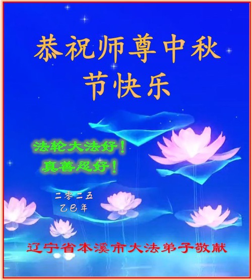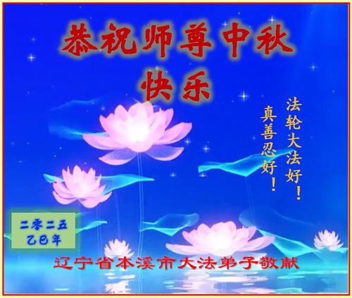 Falun Dafa Practitioners from Benxi City Respectfully Wish Master Li Hongzhi a Happy Mid-Autumn Festival (18 Greetings)