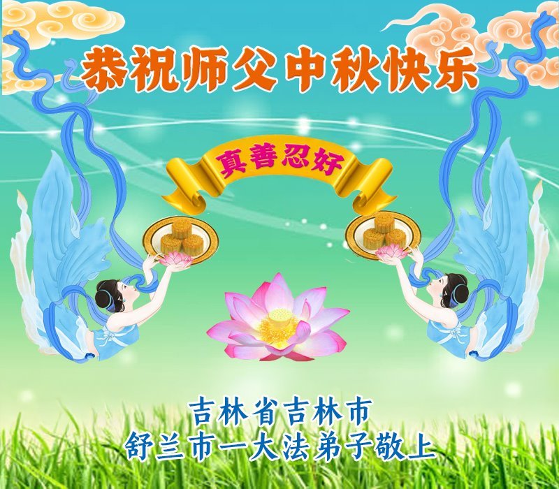 Falun Dafa Practitioners from Jilin City Respectfully Wish Master Li Hongzhi a Happy Mid-Autumn Festival (18 Greetings)