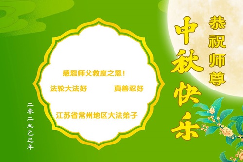 Falun Dafa Practitioners in Jiangsu Province Respectfully Wish Master Li Hongzhi a Happy Mid-Autumn Festival (18 Greetings)