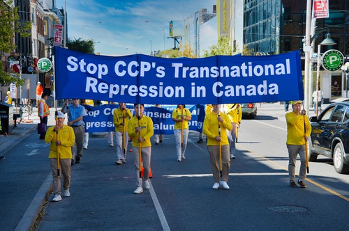 (Minghui.org) At their march in Toronto on September 28, 2025, practitioners condemned the Chinese Communist Party’s (CCP) persecution of Falun Dafa in China and called on people to help stop the CCP’s transnational repression outside China.