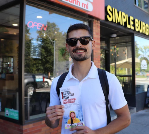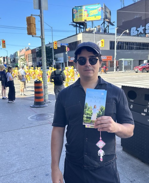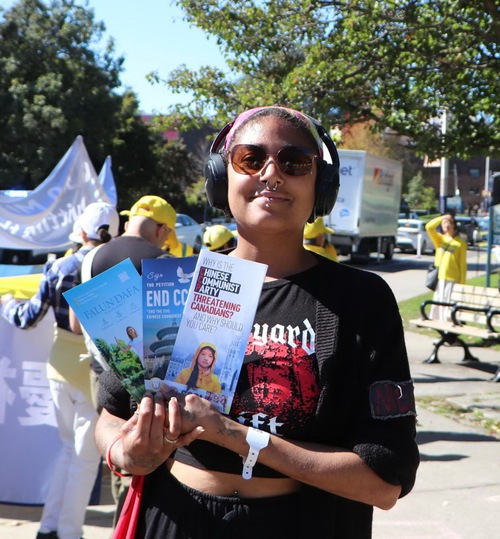 Fatima happened to be in the area as the parade was about to start. She talked with a practitioner and learned about the persecution. She said she was completely opposed to the CCP’s state-sanctioned forced organ harvesting from practitioners and its transnational repression. “Canada is a free country. Things that threaten Canadian citizens must not happen.” She said the CCP threatens Shen Yun Performing Arts performances because it exposes the CCP’s persecution. She said she would sign a petition calling on the Canadian government to stop the CCP’s transnational repression.