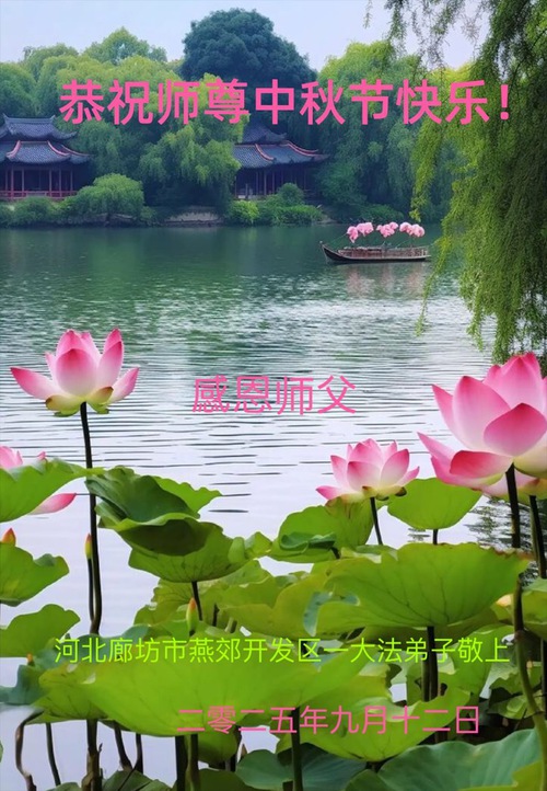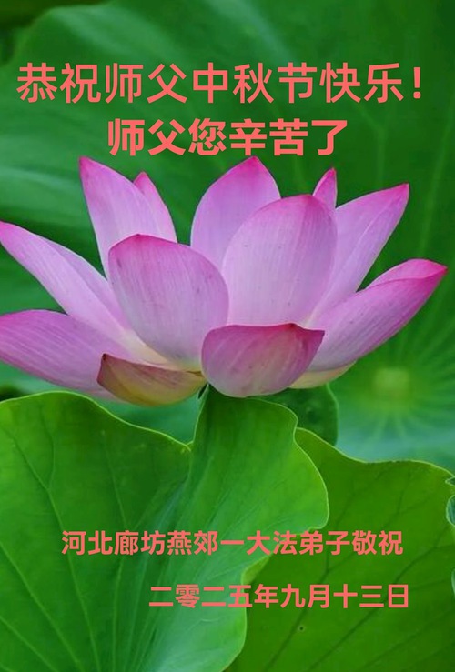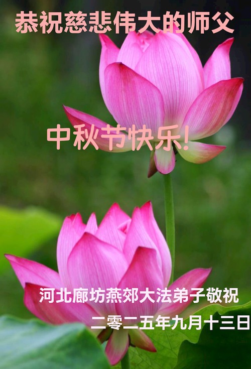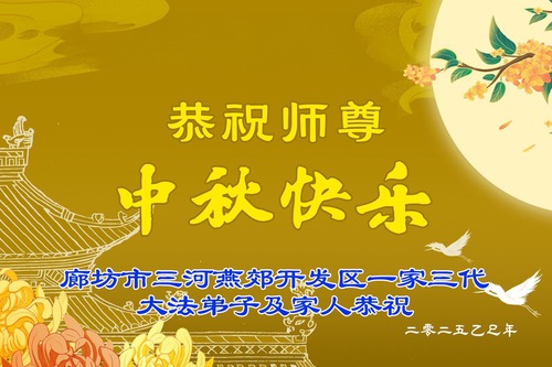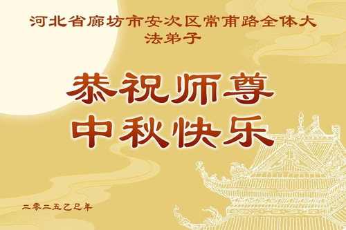 Falun Dafa Practitioners in Langfang City Respectfully Wish Master Li Hongzhi a Happy Mid-Autumn Festival (18 Greetings)