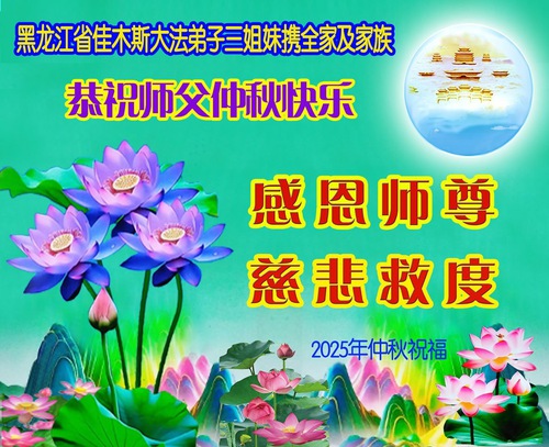 Falun Dafa Practitioners in Jiamusi City Respectfully Wish Master Li Hongzhi a Happy Mid-Autumn Festival (18 Greetings)