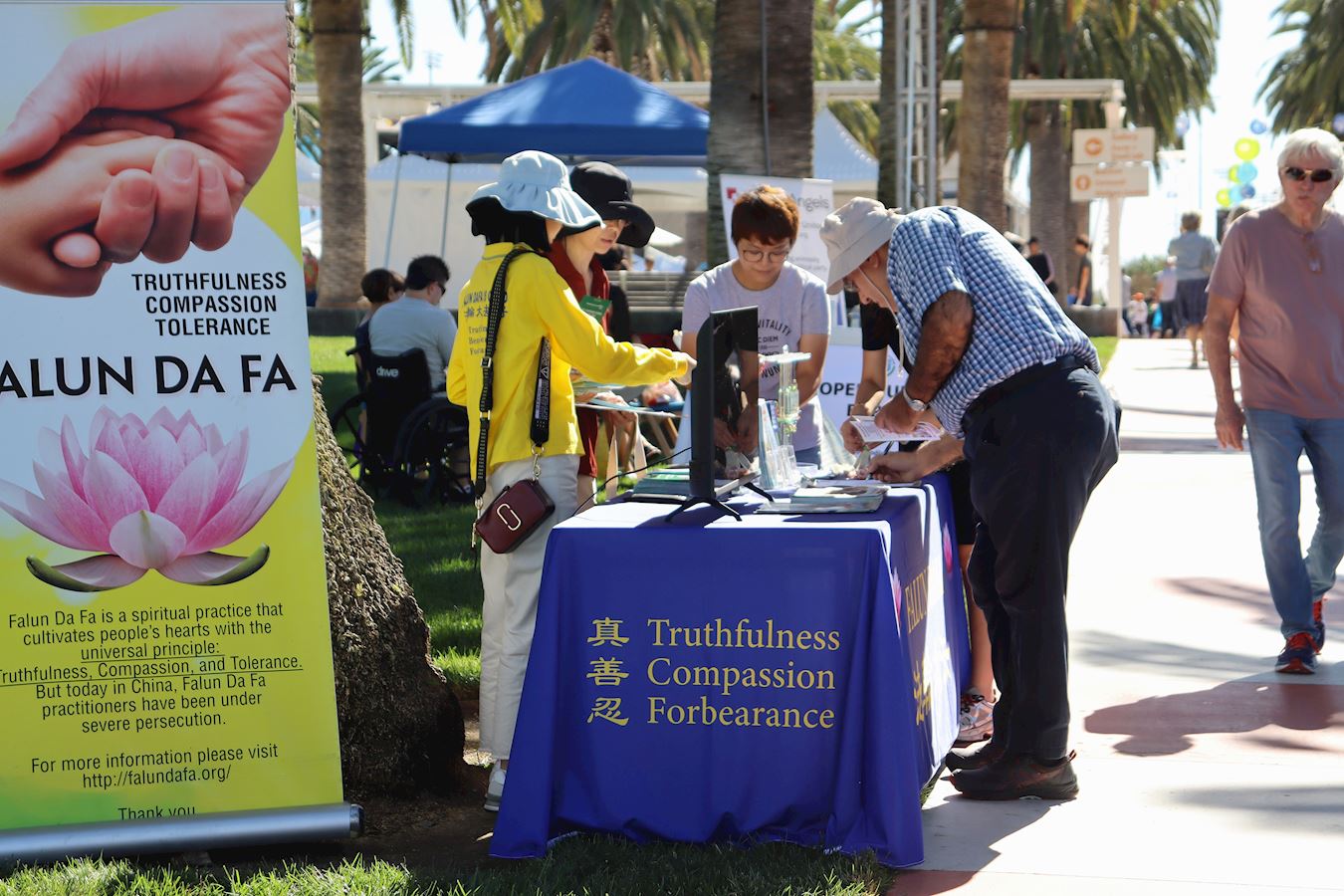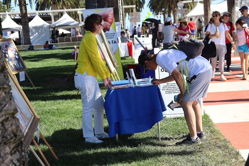 Loria, a local resident, said that she has been very interested in rural culture, religion, and philosophy since she was a child, and has always been eager to learn more about them. Her grandparents had visited China and her friends had lived in China. “I know about the CCP’s suppression of religion, such as Tibetan Buddhism and the Dalai Lama,” she said. After signing the petition, she chatted with practitioners for a long time before leaving.