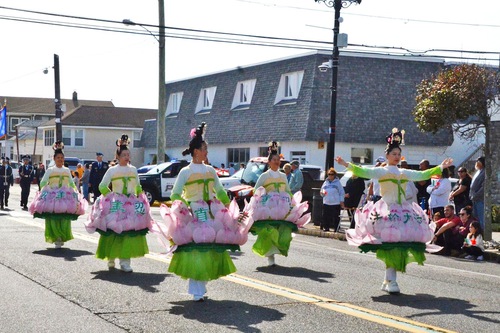 (Minghui.org) Falun Dafa practitioners participated in the 34th Annual Ocean County Columbus Day Parade in Seaside Heights on October 19, 2025. Their waist-drum dance and lotus fairy dance brought traditional Chinese culture to the festival and won high praise.