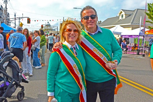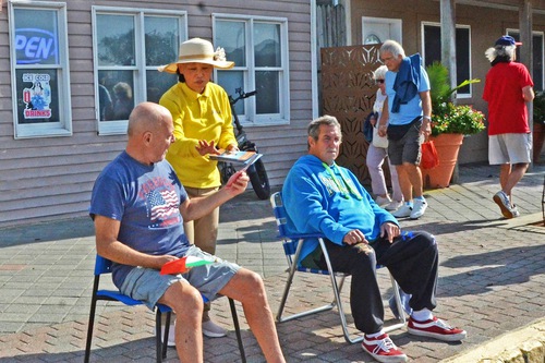 Grand Marshal Anthony Zarrilli (right) admires Falun Dafa.