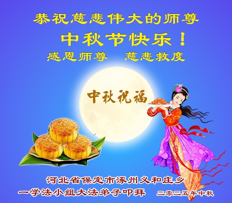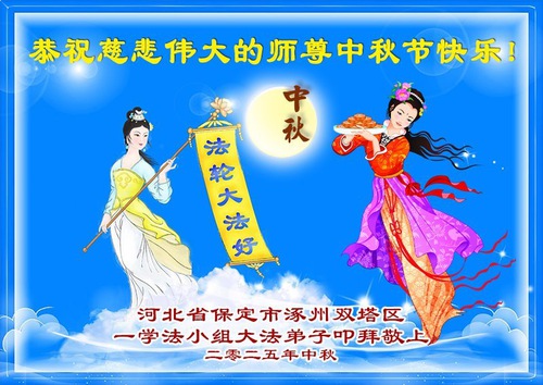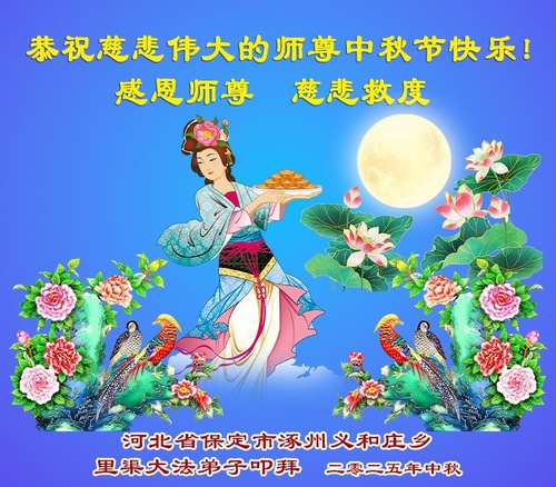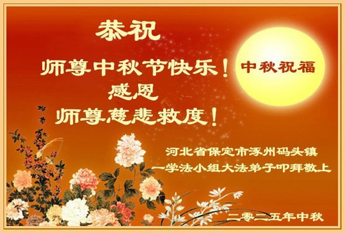 Falun Dafa Practitioners from Baoding City Respectfully Wish Master Li Hongzhi a Happy Mid-Autumn Festival (24 Greetings)