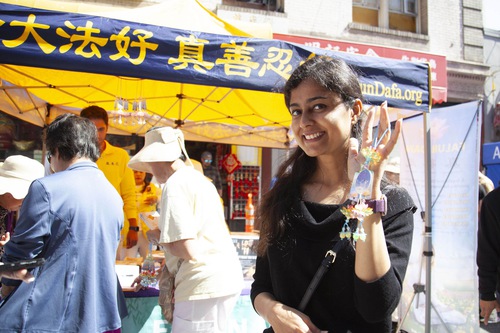 Ankita recently moved to San Francisco and said she just wanted to go for a walk that day and saw the practitioners’ booth. “Today is a really wonderful day. It feels great to learn and practice Falun Dafa. I love it.”