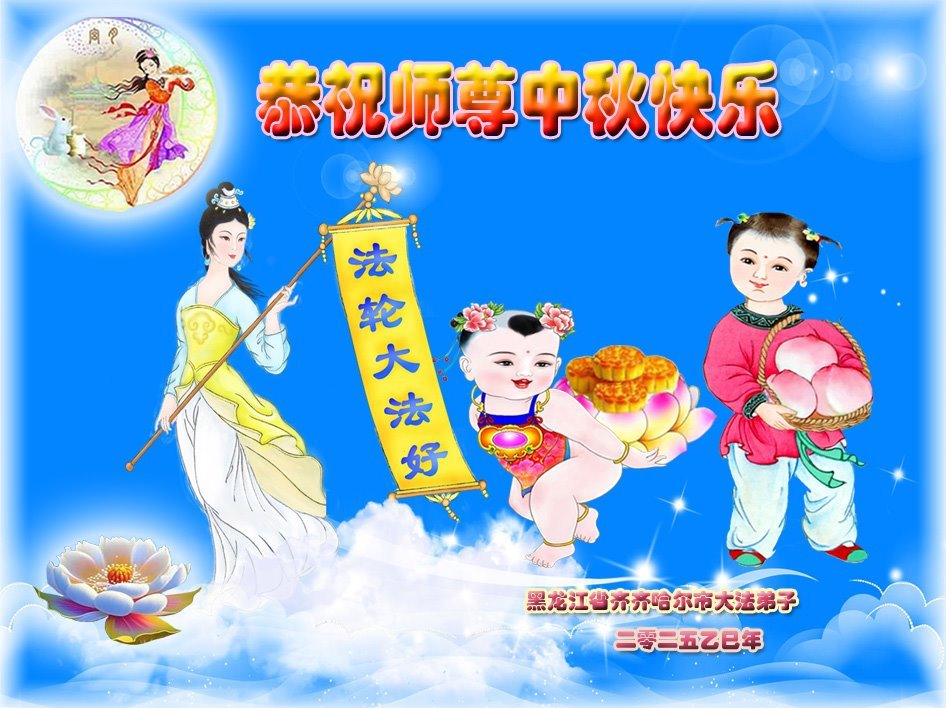 Falun Dafa Practitioners from Qiqihar City Respectfully Wish Master Li Hongzhi a Happy Mid-Autumn Festival (19 Greetings)