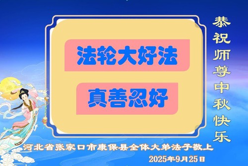 Falun Dafa Practitioners from Zhangjiakou City Respectfully Wish Master Li Hongzhi a Happy Mid-Autumn Festival (18 Greetings)
