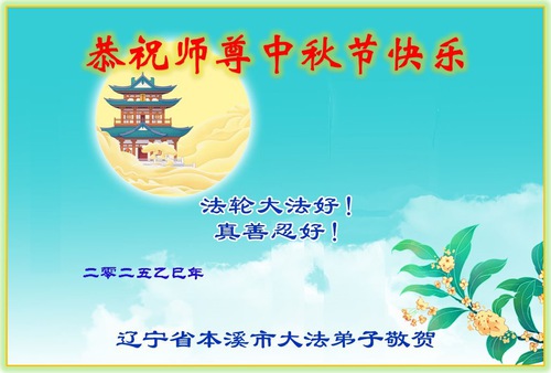 Falun Dafa Practitioners from Benxi City Respectfully Wish Master Li Hongzhi a Happy Mid-Autumn Festival (18 Greetings)