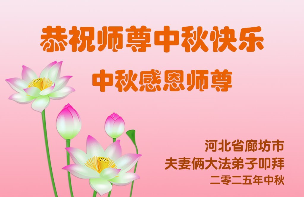 A practitioner in Suihua City, Heilongjiang Province, said, “On September 25, 2025, I made up my mind that I had to practice Falun Dafa. I found a practitioner to teach me to the exercises. I was so eager to learn everything. In the following days, I felt my heart was open and very bright. On the special occasion of the Mid-Autumn Festival, I’d like to thank Master Li for awakening me!”