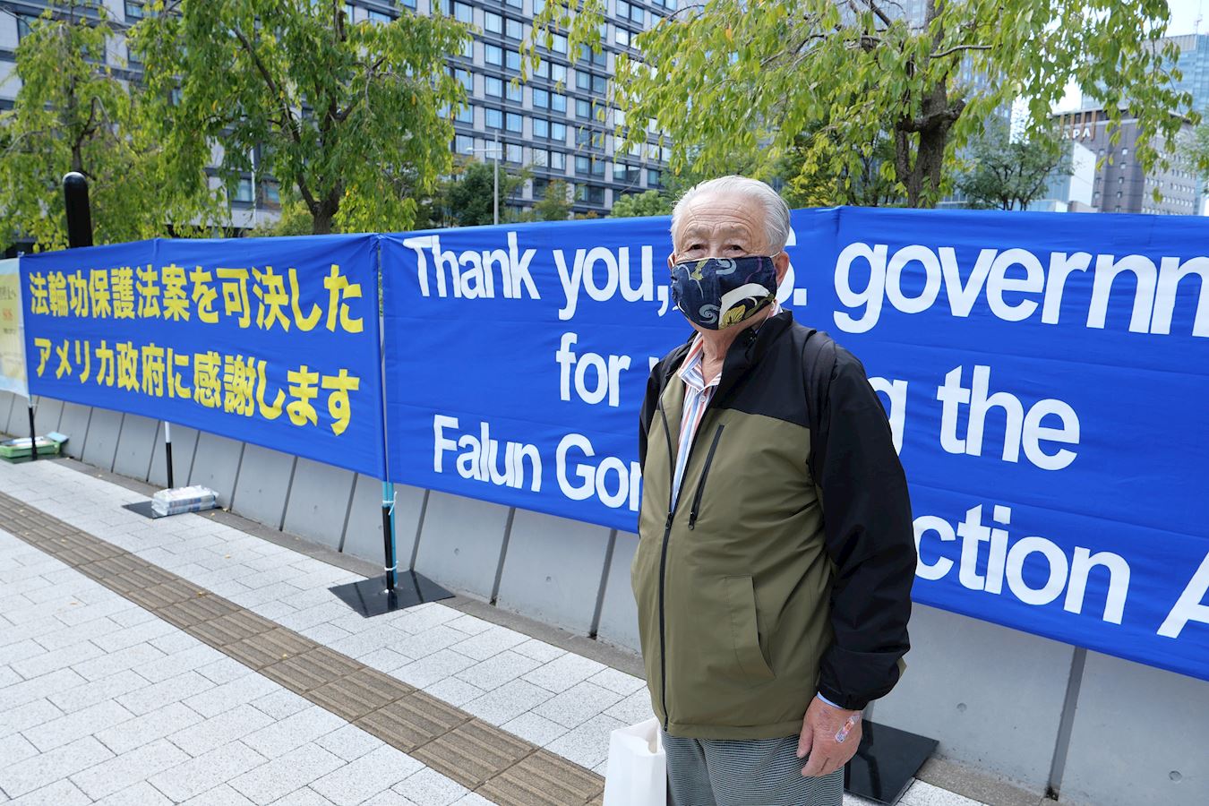 Practitioners displayed banners worded “Falun Dafa is Good,” “Stop the CCP’s Forced Organ Harvesting,” and “Thank the U.S. House of Representatives for Passing the Falun Gong Protection Act, Call on Japan and Other Countries to Follow.”