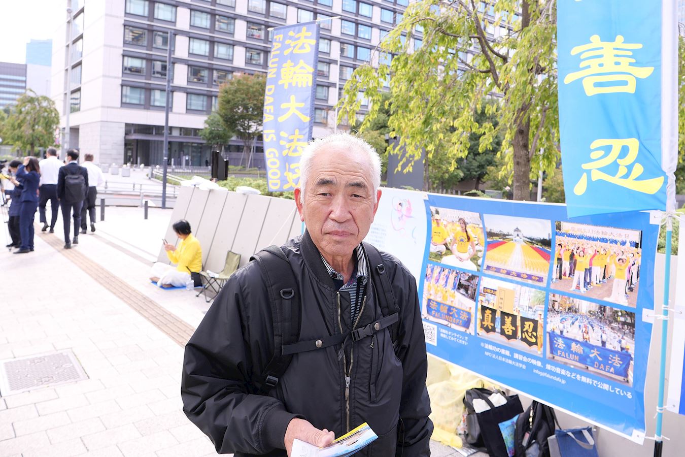 A man from China said that living under the rule of the CCP in China, “Is like a gangster society.” He pointed out, “The CCP doesn’t let people live a good life; it only controls them, and ordinary people suffer greatly.” He also asked, “Are people able to freely practice Falun Gong in Japan?” After being told that there is freedom of belief in other countries, he said, “I met Falun Gong practitioners when I went to Hong Kong.”