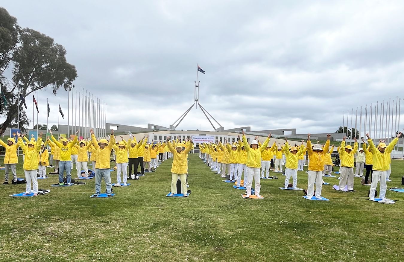 (Minghui.org) Falun Gong practitioners from various parts of Australia gathered in Canberra, the capital city, outside Parliament House, on October 28, 2025, for a peaceful rally. This is one of a series of activities held over four days in Canberra, beginning on Monday October 27th, to expose organ harvesting and the escalating transnational repression by the Chinese Communist Party (CCP) that targets government organizations, federal members, and the public.