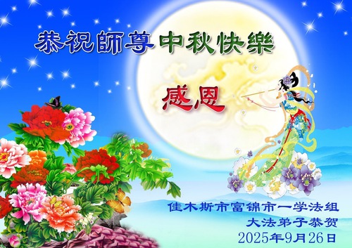 Falun Dafa Practitioners in Jiamusi City Respectfully Wish Master Li Hongzhi a Happy Mid-Autumn Festival (18 Greetings)
