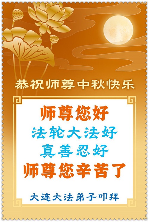 Falun Dafa Practitioners in Dalian City Respectfully Wish Master Li Hongzhi a Happy Mid-Autumn Festival (20 Greetings)