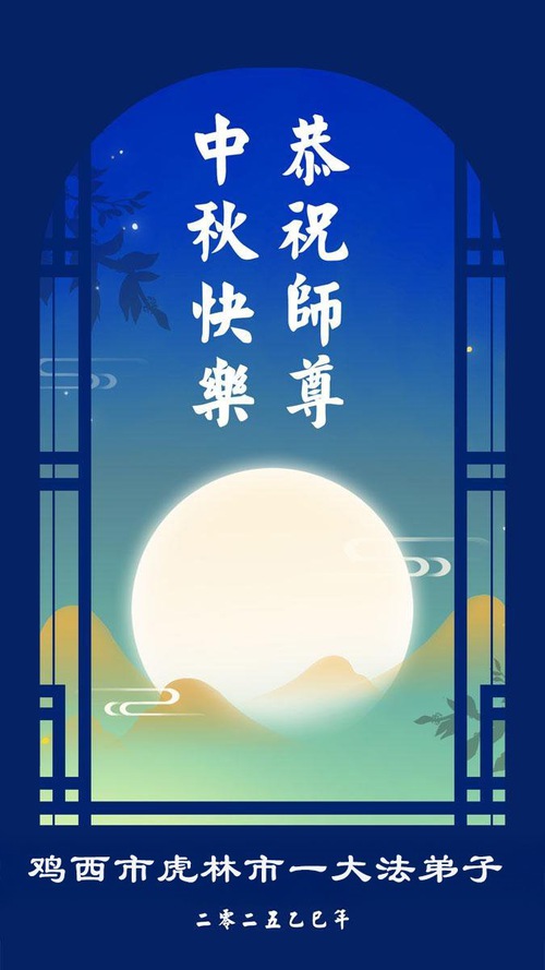 Falun Dafa Practitioners in Jixi City Respectfully Wish Master Li Hongzhi a Happy Mid-Autumn Festival (21 Greetings)