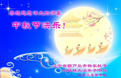 Falun Dafa Practitioners in Huludao City Respectfully Wish Master Li Hongzhi a Happy Mid-Autumn Festival (24 Greetings)