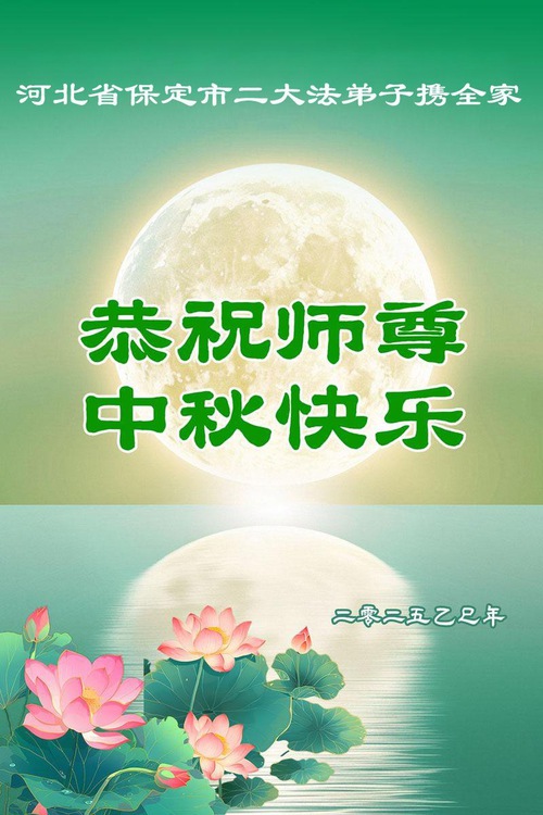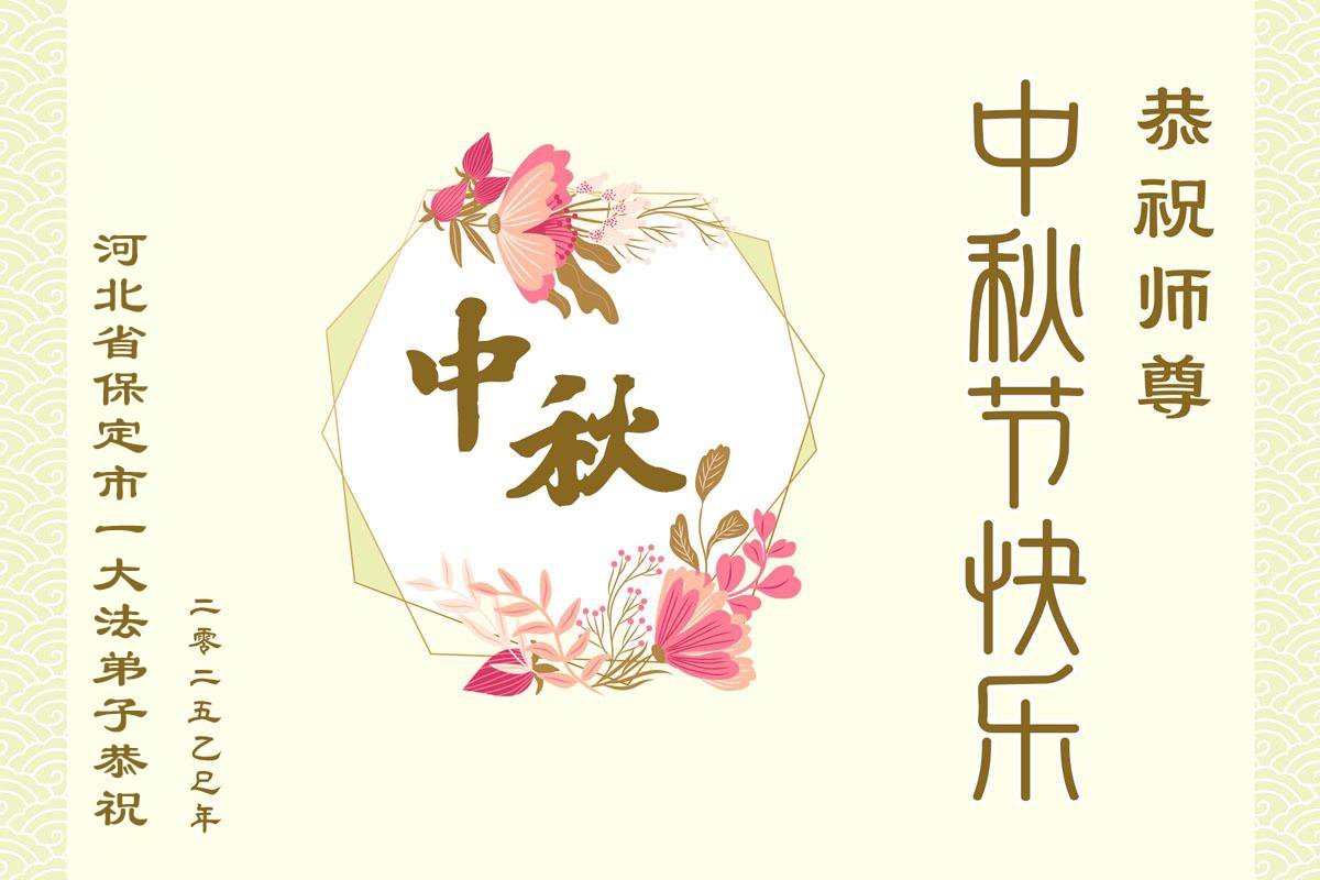 Falun Dafa Practitioners from Baoding City Respectfully Wish Master Li Hongzhi a Happy Mid-Autumn Festival (19 Greetings)