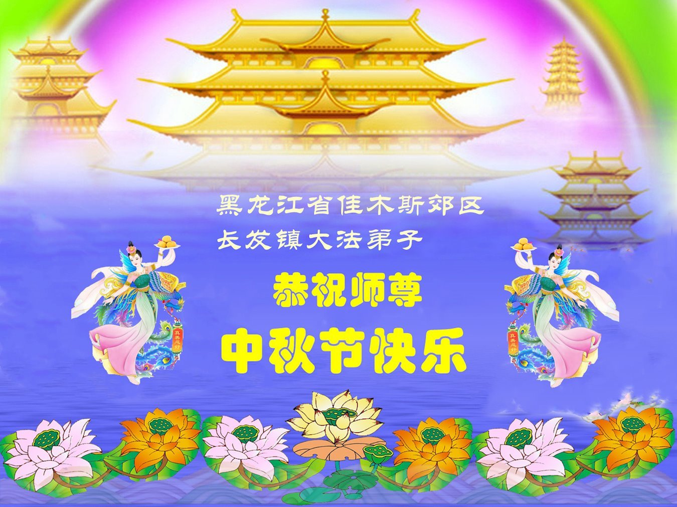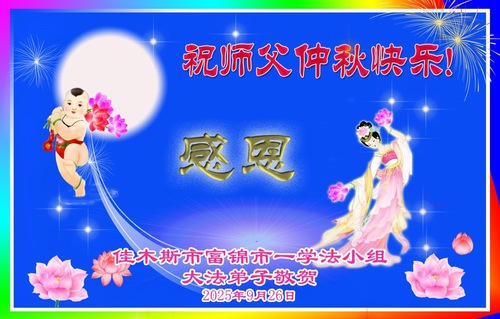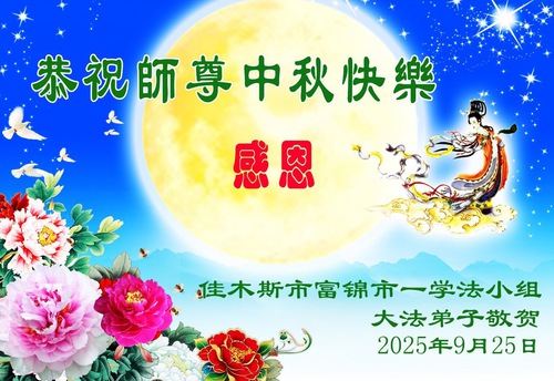 Falun Dafa Practitioners from Jiamusi City Respectfully Wish Master Li Hongzhi a Happy Mid-Autumn Festival (18 Greetings)