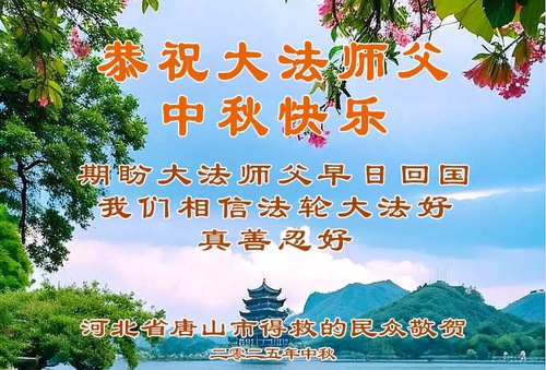 Falun Dafa Practitioners from Tangshan City Respectfully Wish Master Li Hongzhi a Happy Mid-Autumn Festival (19 Greetings)