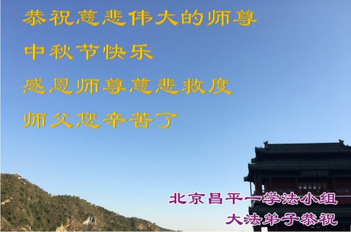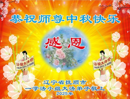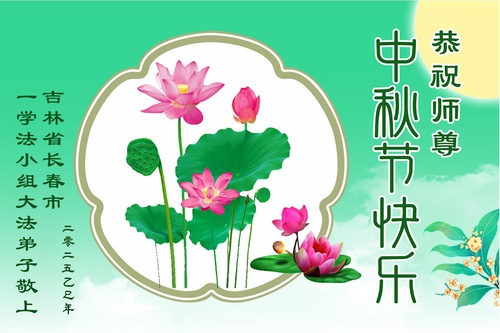 Practitioners in Fushun City, Liaoning Province, remind each other that, “Although there seem to be continuing adversities, let’s recall why we began practicing Falun Dafa and what we are here for. Please remember our heart-felt wish, wake up, and do our best to help Master save people. Compassionate Master has done so much for us and for sentient beings. Let us do even better and fulfill our prehistoric vow to help him save people. Thank you, Master Li! We wish you a happy Moon Festival!”