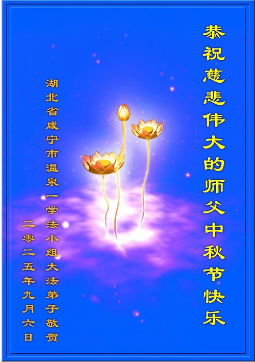 Practitioners in Xianning City, Hubei Province, said they are very grateful because Master has sacrificed so much and saved countless beings. “After more than 26 years of harsh persecution, we have learned and improved and now know how to be genuine Dafa practitioners. We will follow Master closely, remain diligent, safeguard Dafa, and help save people,” they wrote.