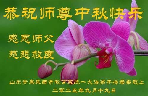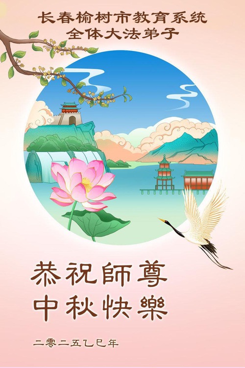 Practitioners in Bazhong City, Sichuan Province, wrote, “Compassionate Master, Happy Mid-Autumn Festival! For 26 years, under Master’s compassionate guidance and enlightenment, we disciples have come to this day. Under Master’s compassionate protection, we have overcome every difficulty. We are grateful for Master’s compassionate salvation! Thank you, Master, for your compassionate protection! We must strive for excellence, do well the three things, fulfill our prehistoric vows, and follow Master to return to our true home! We bow in gratitude to Master!”