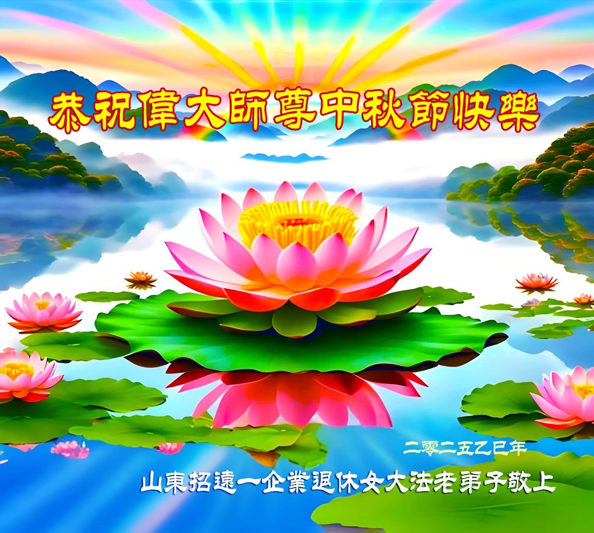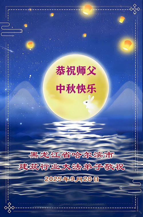 Practitioners in the Bazhong City Government in Sichuan Province wish Master a happy Mid-Autumn Festival. The greeting reads: “Master, thank you for your hard work! You have saved your disciples, purified our minds and bodies, and guided us to validate the Fa by doing the three things well, walking the sacred path of cultivation. You have endured endless hardships for all sentient beings. Your boundless compassion has dispelled the haze and illuminated the universe. We have nothing but endless gratitude for Master!”