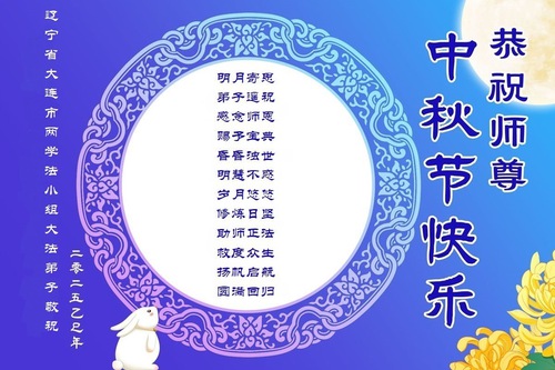 Falun Dafa Practitioners in Dalian, Panjin, and Benxi Respectfully Wish Master Li Hongzhi a Happy Mid-Autumn Festival (82 Greetings)