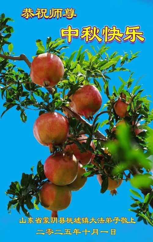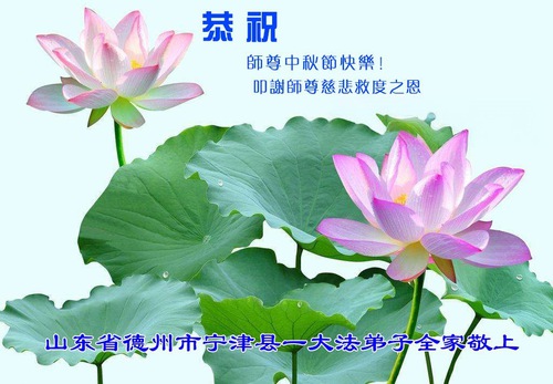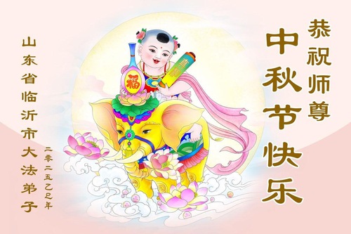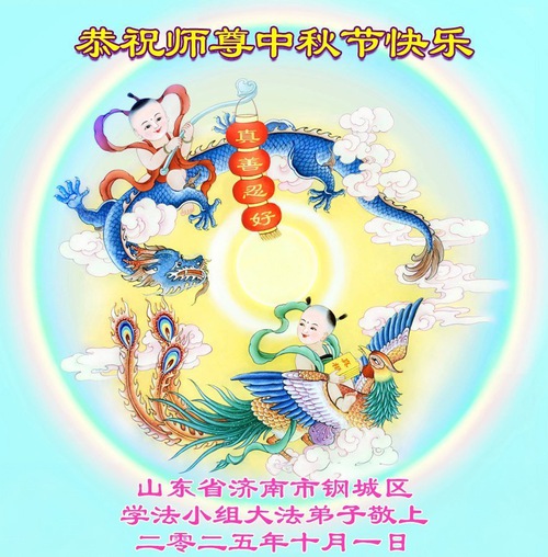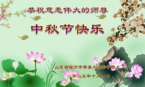 Falun Dafa Practitioners in Jinan, Dezhou, Weifang, and Linyi Respectfully Wish Master Li Hongzhi a Happy Mid-Autumn Festival (80 Greetings)