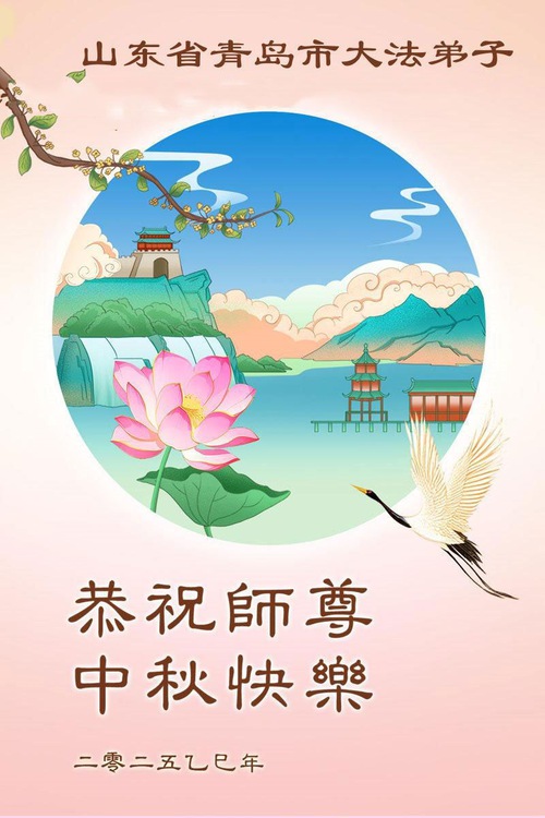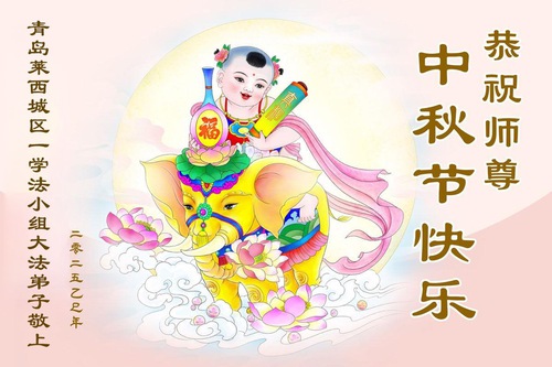 Falun Dafa Practitioners in Qingdao Respectfully Wish Master Li Hongzhi a Happy Mid-Autumn Festival (96 Greetings)