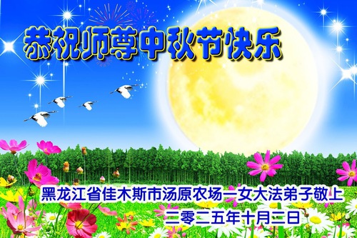 Falun Dafa Practitioners in Jiamusi and Qiqihar Respectfully Wish Master Li Hongzhi a Happy Mid-Autumn Festival (96 Greetings)
