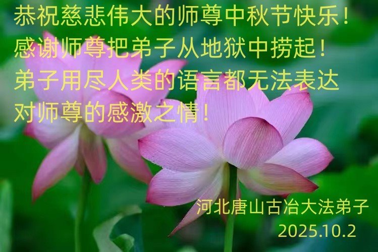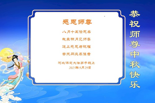 Falun Dafa Practitioners in Tangshan and Baoding Respectfully Wish Master Li Hongzhi a Happy Mid-Autumn Festival (105 Greetings)