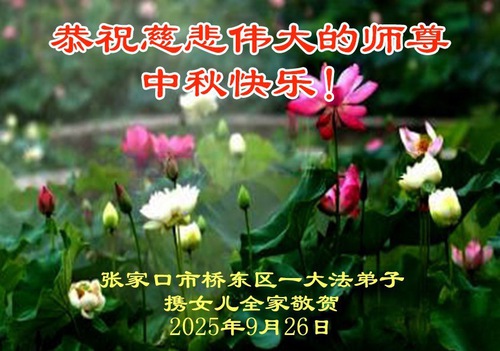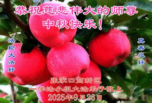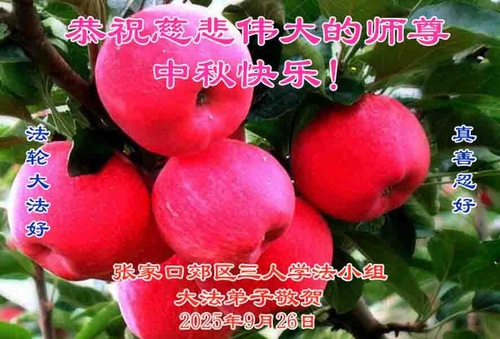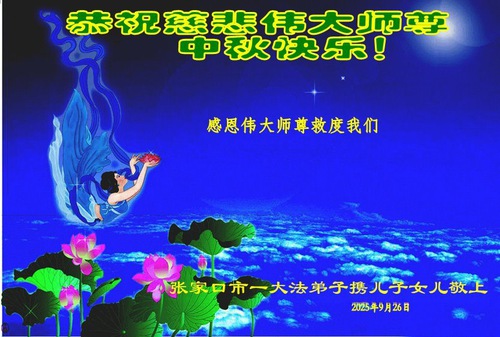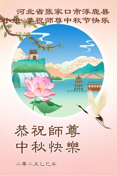 Falun Dafa Practitioners in Zhuangjiakou City Respectfully Wish Master Li Hongzhi a Happy Mid-Autumn Festival (99 Greetings)