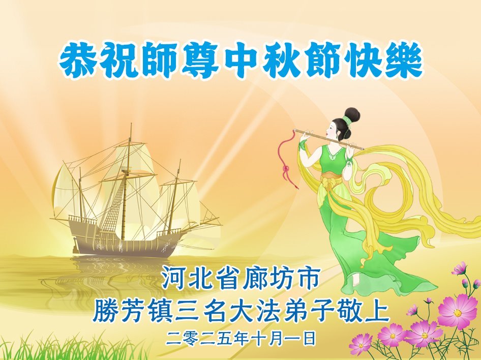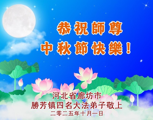Falun Dafa Practitioners in Qinhuangdao and Langfang Respectfully Wish Master Li Hongzhi a Happy Mid-Autumn Festival (97 Greetings)