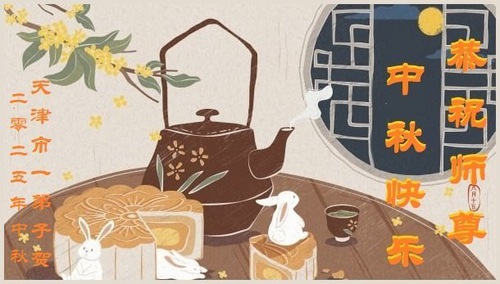 Falun Dafa Practitioners from Tianjin Wish Revered Master a Happy Mid-Autumn Festival!