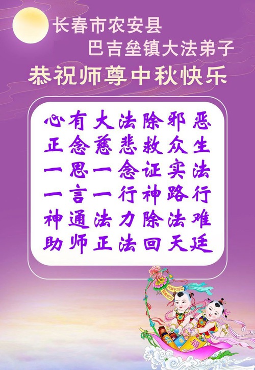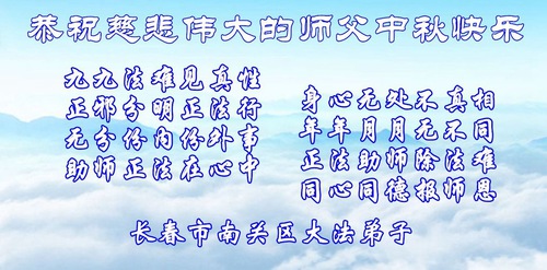 Falun Dafa Practitioners in Changchun City Respectfully Wish Master Li Hongzhi a Happy Mid-Autumn Festival (101 Greetings)