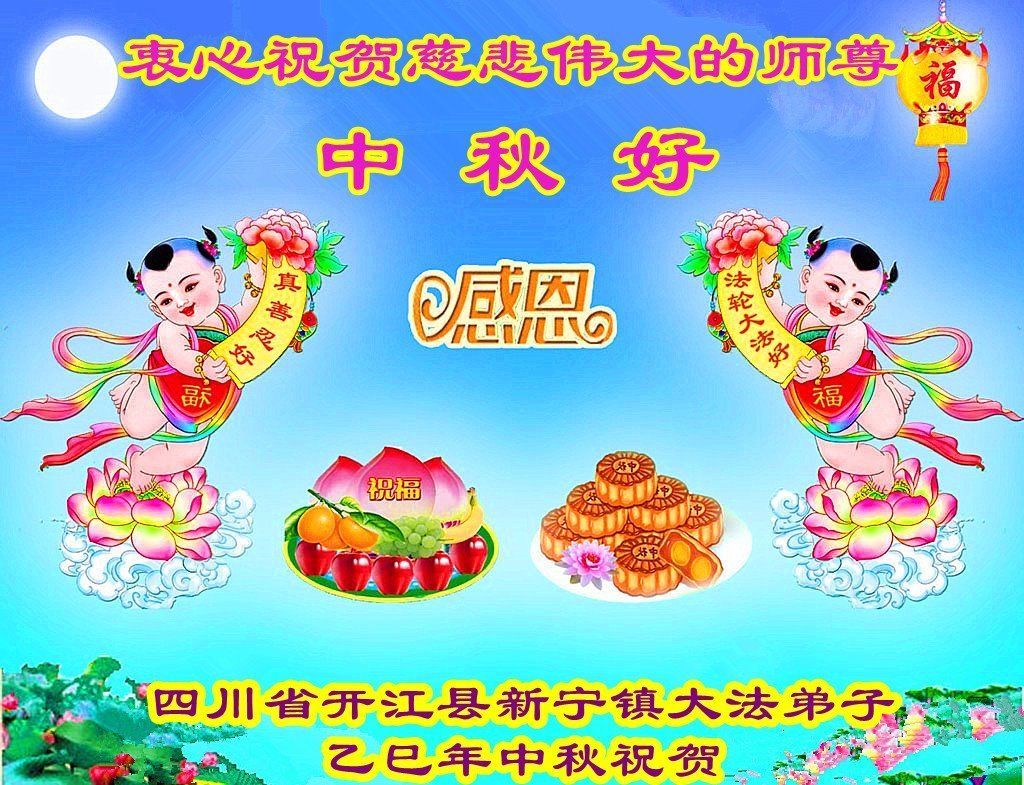 Falun Dafa Practitioners from Cities/Towns/Areas of Guang’an, Dazhou, Leshan, Deyang, Luzhou, Guangyuan, Bazhong, Panzhihua, Shehong, Nanchong, Mianyang, Suining, and Ziyang in Sichuan Province Wish Revered Master a Happy Mid-Autumn Festival!