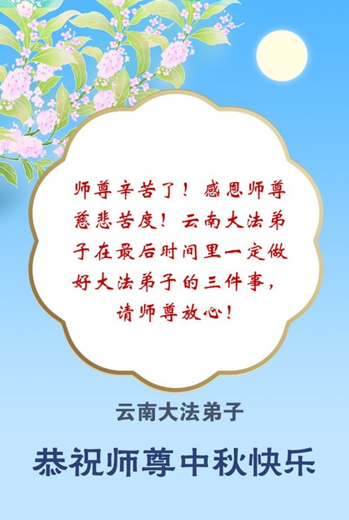 Falun Dafa Practitioners from Cities/Towns/Areas of Kunming, Honghezhou, Luliang, and Yuxi in Yunnan Province Wish Revered Master a Happy Mid-Autumn Festival!