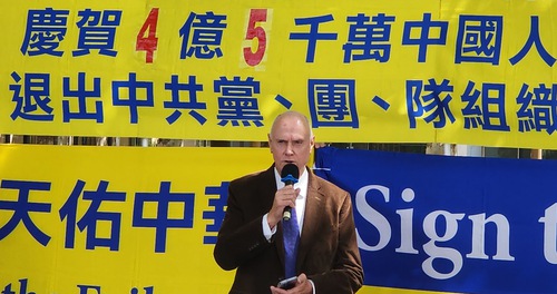 Professor Feng Chongyi, China expert and Associate Professor of the University of Technology Sydney (UTS), spoke at the rally, praising the withdrawal movement initiated and promoted by practitioners of Falun Dafa (also known Falun Gong). He called movement “The most successful and largest social movement against the CCP’s tyranny. It is precisely because of your efforts and success that more and more countries and people around the world are awakened and fully aware of the evil nature of the CCP regime. They are impressed by your courage, tenacity, and wisdom, and are determined, like me, to support your great cause.”