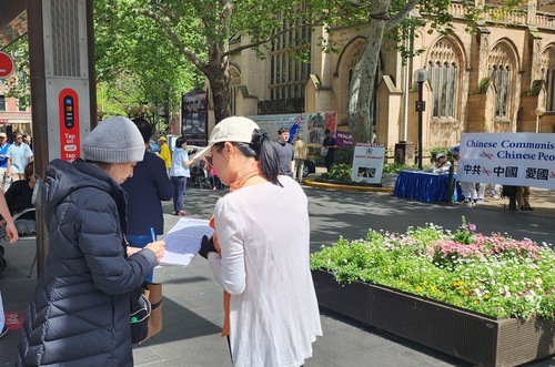 Many passers-by listened to the speeches, talked with practitioners, and signed the petition calling to stop the CCP’s persecution.