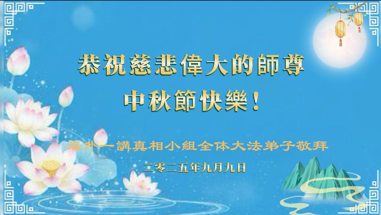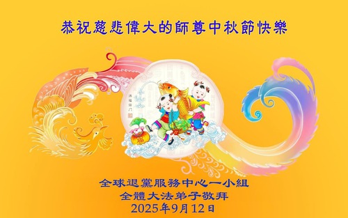 (Minghui.org) On the special occasion of the 2025 Mid-Autumn Festival, Falun Dafa practitioners are sending their most heartfelt greetings to the founder of the practice, Master Li Hongzhi.