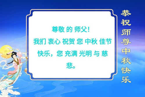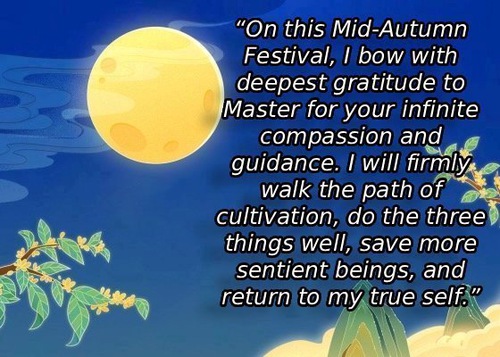 Respected Master,Happy Mid-Autumn Festival. I always feel that You are holding my hand and guiding me with every step I take. With Your protection and blessings, I wish to stay diligent, pure, and true on this cultivation path.