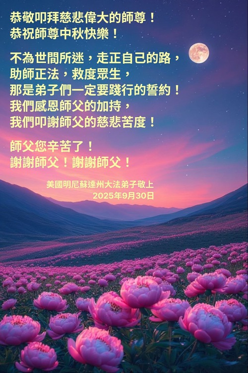 A Practitioner’s Family in Minnesota, U.S.A., Respectfully Wishes Master a Happy Mid-Autumn Festival!