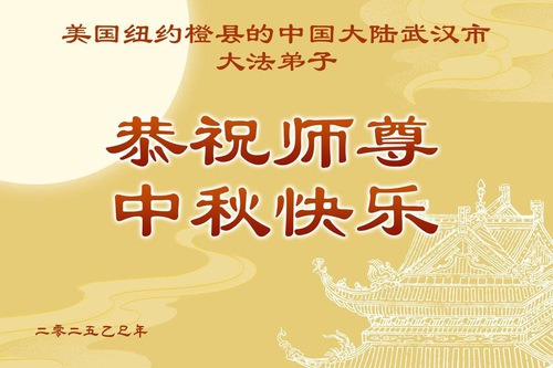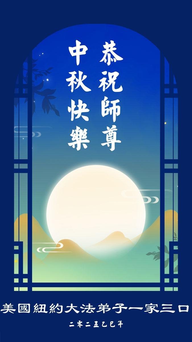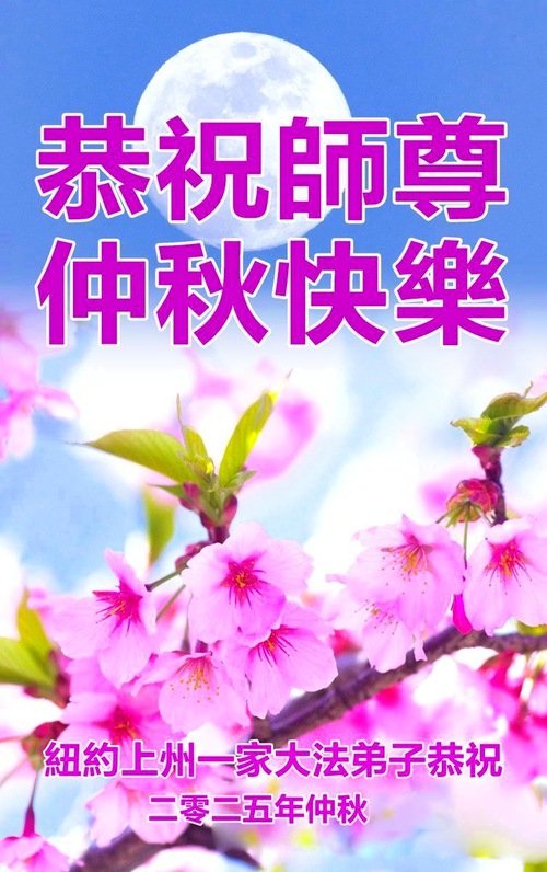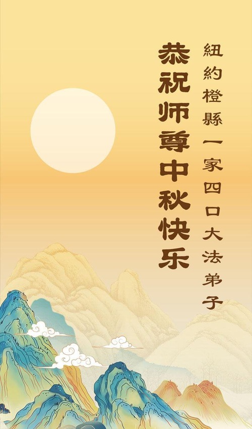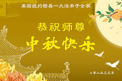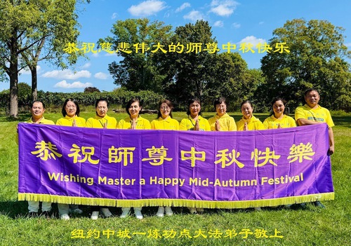 (Minghui.org) Falun Dafa disciples from across New York—including individuals, families, young disciples, and various practice groups—respectfully wish Master Li Hongzhi a happy Mid-Autumn Festival.