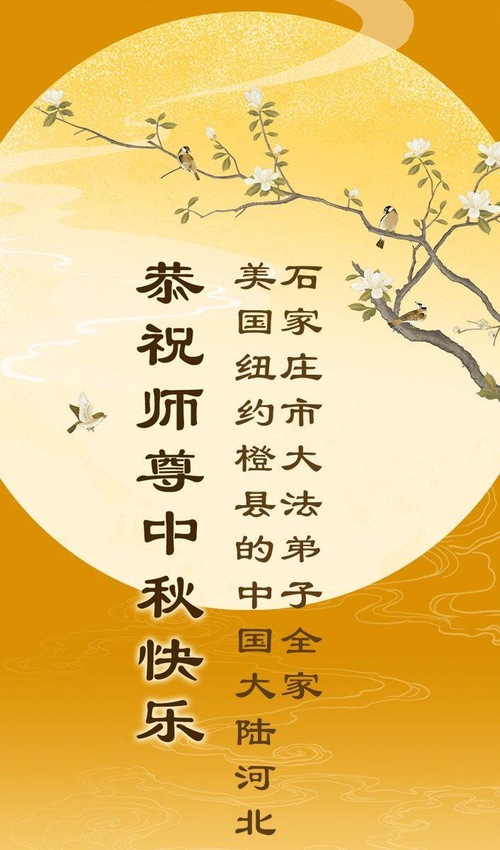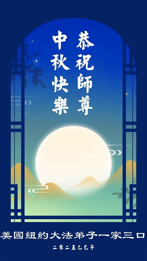 A Falun Dafa Practitioner from Tangshan, Hebei Province, Currently Residing in New York, Respectfully Wishes the Compassionate and Great Master a Happy Mid-Autumn Festival!