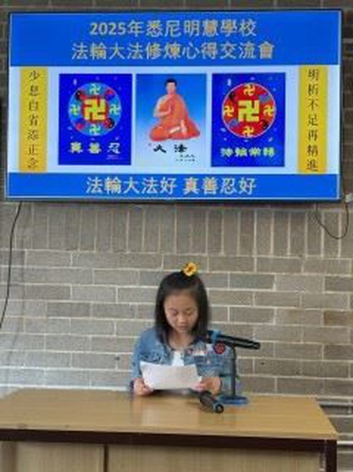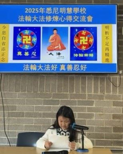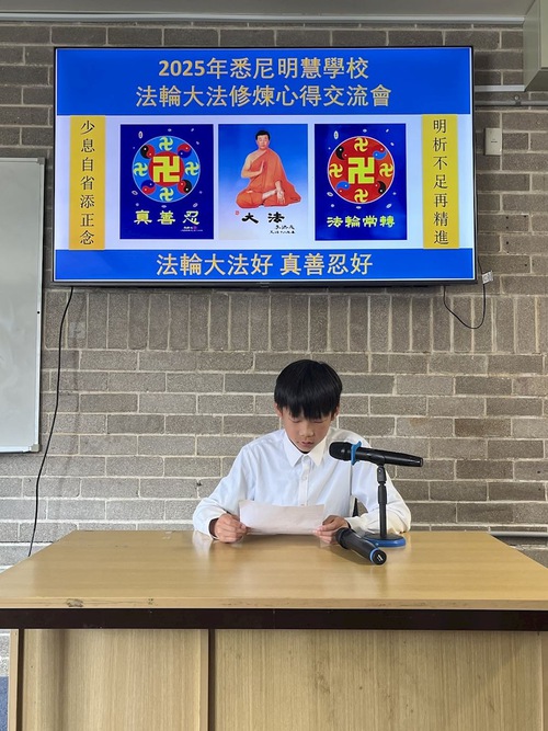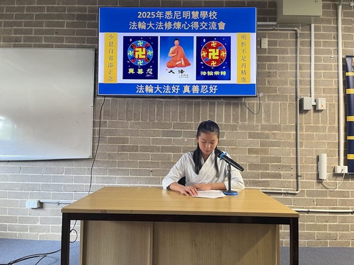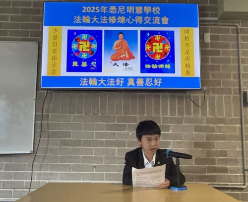 (Minghui.org) The Minghui School in Sydney held a Falun Dafa Experience-Sharing Conference on September 28, 2025. Twelve young practitioners gave speeches and talked about how they persist in cultivation despite their busy school schedules and daily lives, strive to eliminate attachments, assist Master in validating the Fa, in saving sentient beings, and become qualified young practitioners.