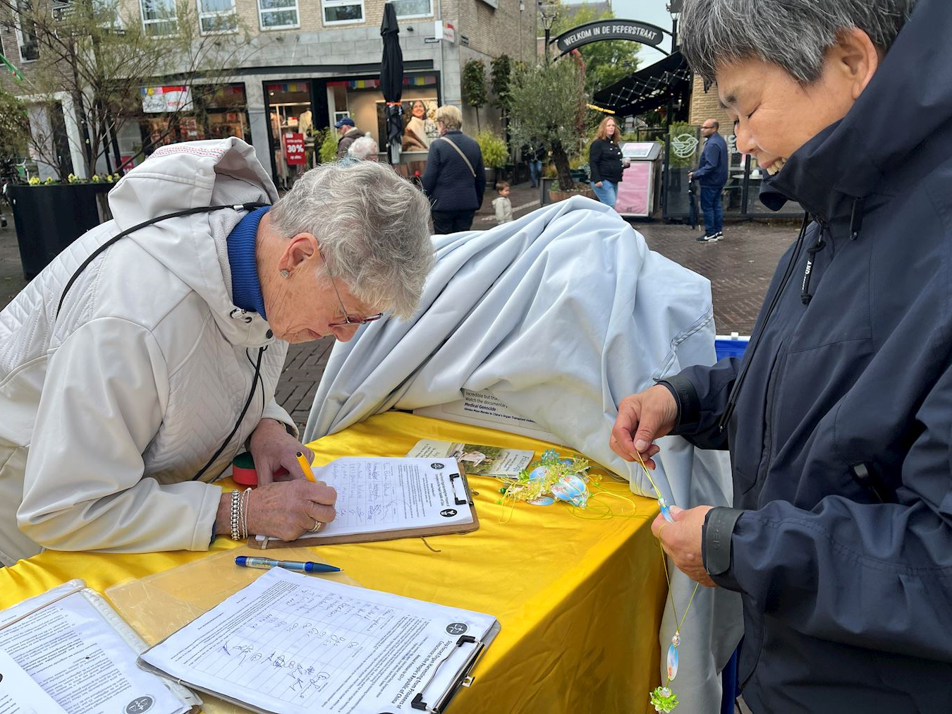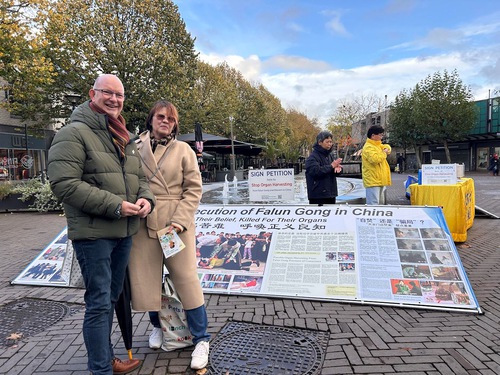 Locals Michael and his wife Susan stopped by the Falun Dafa booth in Oss and told practitioners that they had signed an online petition calling to stop the CCP’s persecution of Falun Dafa. “We think every person, every culture, and every belief should be free from suppression from government or other groups,” Michael said. They were saddened to learn of the CCP’s atrocity of harvesting organs from living practitioners and wished them success.